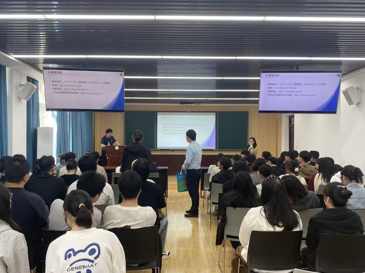 接着,宣讲老师从两大维度展开分享:一方面,系统梳理了平顶山学院近年来的科研突破成果与研究生招生政策动态,特别强调学院对本院学子报考及调剂的开放态度与支持措施;另一方面,结合自身从本科到硕士生导师的求学与成长经历,对当前考研形势进行了专业剖析,从院校选择、专业定位到备考策略逐一解读,并针对现场学生提出的考研困惑、调剂流程、科研能力提升等具体问题给予了针对性解答。