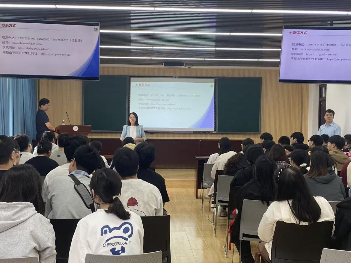 为深化考研指导工作,助力学生科学规划学业与就业路径,9月25日下午,平顶山学院化学与环境工程学院党委书记曹萍一行4人来我院开展硕士研究生招生宣讲和交流。此次活动吸引了众多即将报考研究生的22级学生及对考研充满兴趣的学子积极参与,学院党委副书记李彦霓、副院长郭娇、教学秘书杜全周出席会议。