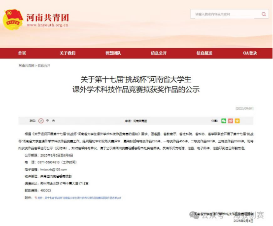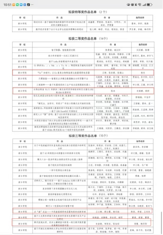 由河南省共青团组织的第十七届"挑战杯"河南省大学生课外学术科技作品竞赛,经网络初审和现场决赛评审,我院喜获佳绩,共获得二等奖2项,三等奖2项。