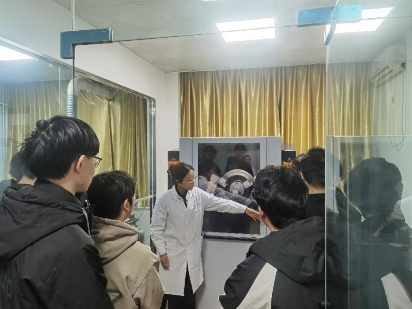实践课上,分析测试中心的专业技术人员先后对X射线衍射仪(XRD)、扫描电子显微镜(SEM)、核磁共振波谱仪(NMR)等大型精密仪器进行了系统讲解。讲解过程中,技术人员结合仪器实物,详细介绍了各仪器的基本构造、工作原理、操作规范及注意事项,并通过实际案例展示了仪器在材料分析、化学研究等领域的应用场景。