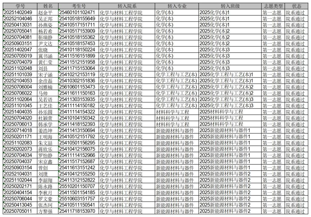 依据《新乡学院学生学籍学历管理实施细则(修订)》(新院教〔2023〕26号)和《新乡学院学生转学、转专业管理办法(修订)》(新院教〔2023〕25号)文件有关要求,按照学校的统一部署,经学生本人申请、学生所在学院同意,教务处初审,专业考核,学院转专业工作领导小组研究,现就拟接收的转专业学生名单公示如下: